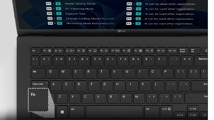 Giữ phím Fn hoặc Windows để hiển thị bản đồ phím tắt. LG gram được tải sẵn tất cả các phím tắt trực quan nhất.