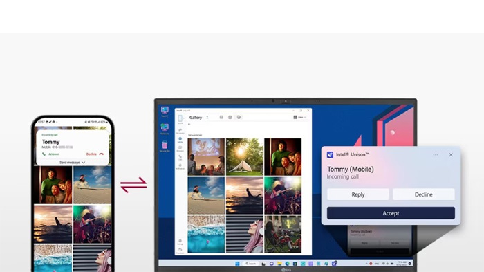 Với phần mềm Intel® Unison™, giờ đây việc liên kết từ các thiết bị Android hoặc iOS với gram của bạn thật dễ dàng: chuyển file, gửi tin nhắn, thực hiện cuộc gọi..