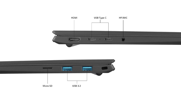 LG gram không chỉ cung cấp nhiều cổng khác nhau mà còn có hai cổng Thunderbolt™ 4 cho khả năng mở rộng tối ưu. Trải nghiệm màn hình 5k ở tốc độ truyền 40 GB trong khi sạc đồng thời các thiết bị bên ngoài.