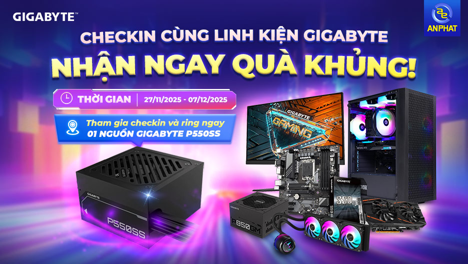 Chương trình “Check In Cùng Linh Kiện GIGABYTE – Nhận ngay quà khủng!” chính thức diễn ra từ 27/11 đến 07/12/2025, mang đến cơ hội nhận quà siêu giá trị cho mọi khách hàng. Bạn chỉ cần mua linh kiện GIGABYTE tại An Phát Computer trong thời gian diễn ra chương trình, sau đó chụp ảnh check-in cùng sản phẩm, rồi đăng lên Facebook. Bài đăng có tổng lượt cảm xúc cao nhất sẽ nhận ngay nguồn GBT P550SS siêu chất.