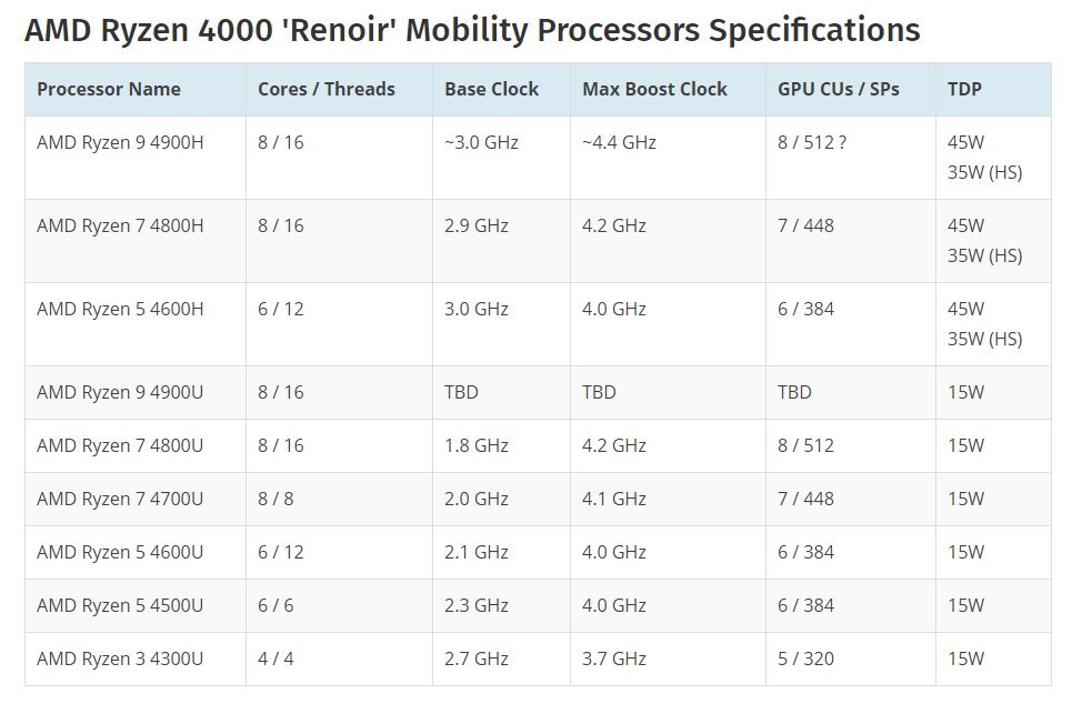 - AMD Ryzen 9 4900H sẽ có công suất tiêu chuẩn 45W và 35W. Ryzen 9 4800HS 35W cung cấp hiệu suất tốt so với Ryzen 9 4800H 45W ở các tiêu chuẩn khác nhau.