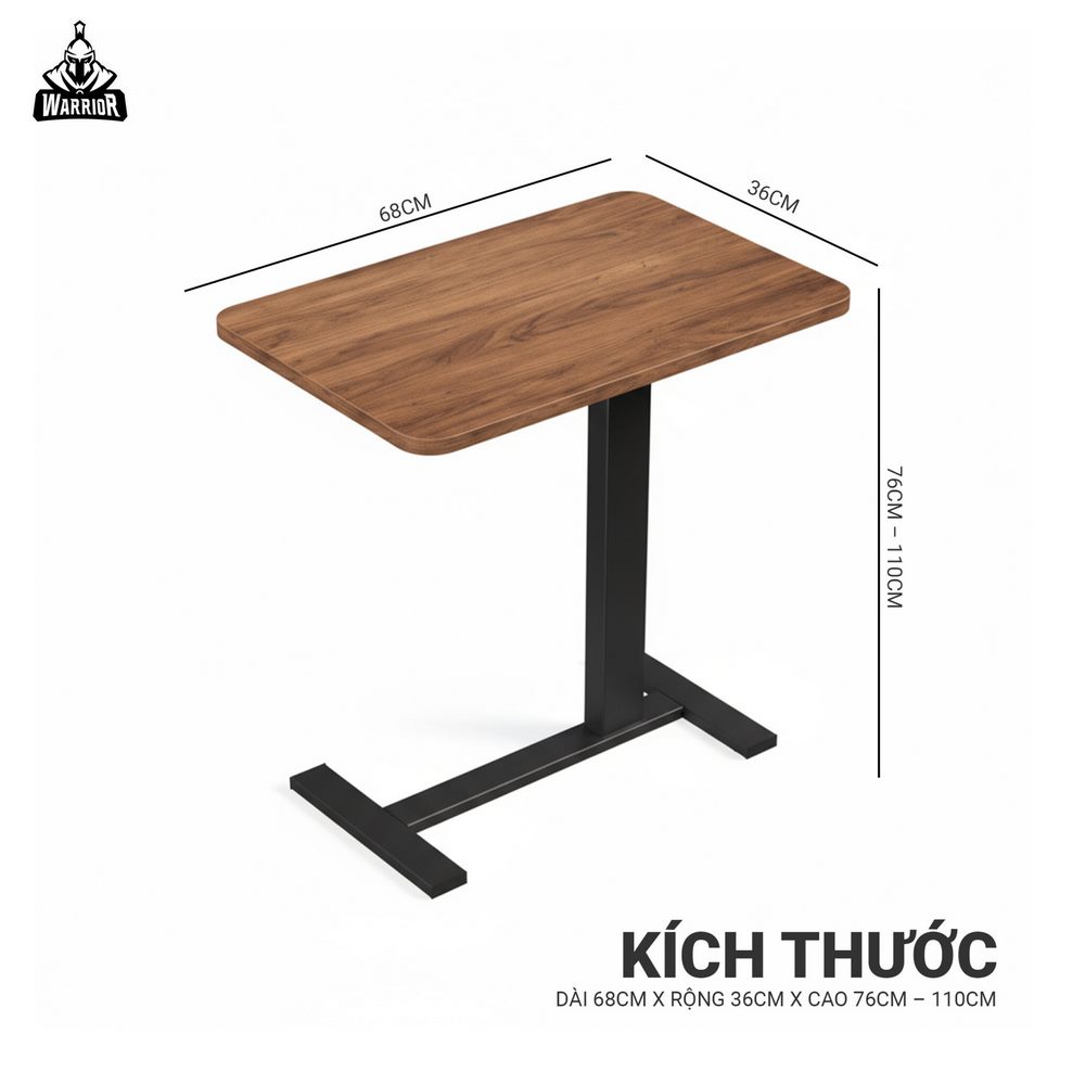 Kích thước hợp lý: Với mặt bàn 68cm x 36cm, bạn có đủ không gian cho máy tính, tài liệu và các vật dụng cần thiết mà vẫn đảm bảo gọn gàng, tối ưu diện tích.