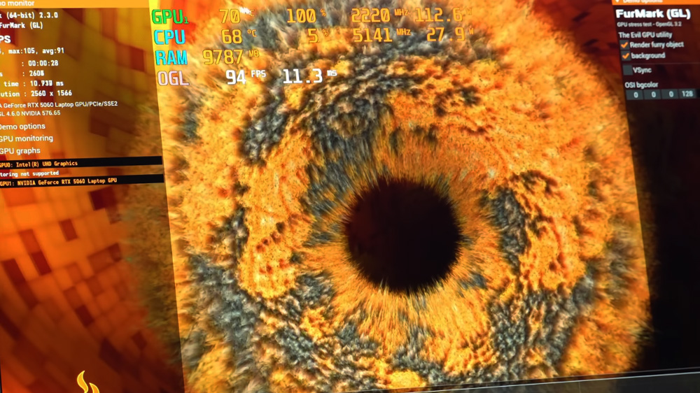 Test Furmark RTX 5060 115W của ROG STRIX G16