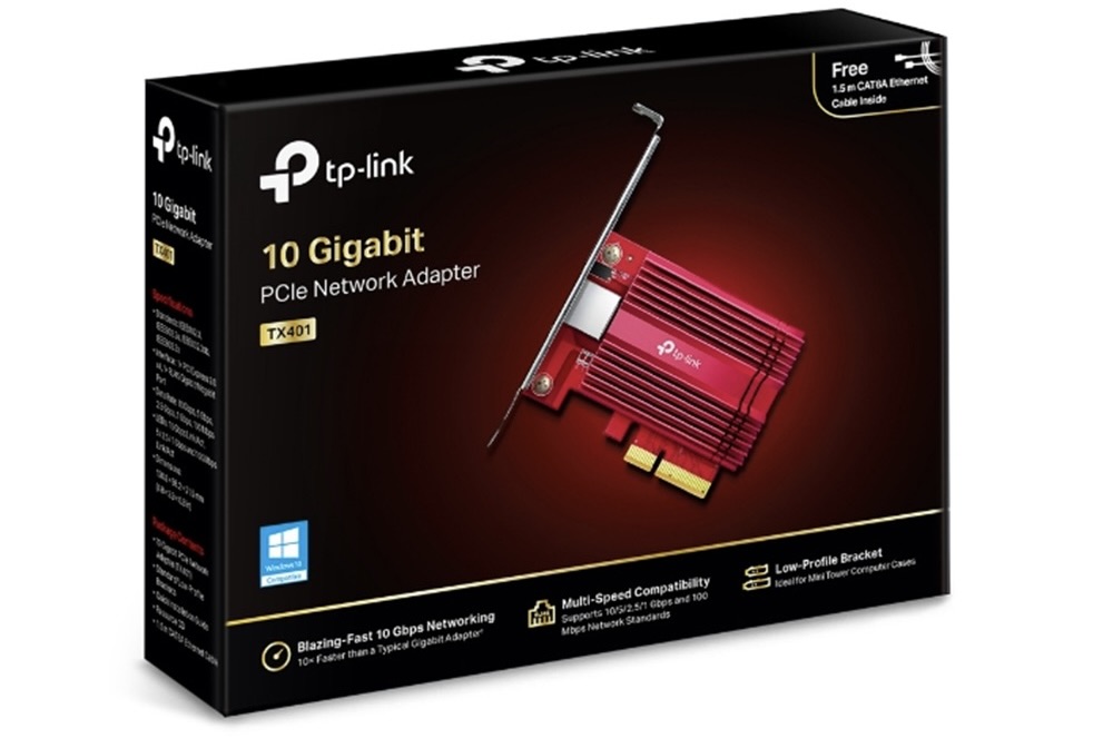 Card mạng TP-Link PCI Express 10 Gigabit TX401 là giải pháp nâng cấp kết nối mạng hiệu suất cao dành cho máy tính để bàn, workstation và hệ thống máy chủ mini cần băng thông lớn, độ trễ thấp và độ ổn định cao. Được trang bị công nghệ 10GBase-T mới nhất, TX401 mang đến tốc độ truyền tải vượt trội, đáp ứng hoàn hảo các nhu cầu hiện đại như sao lưu dữ liệu dung lượng lớn, dựng phim, thiết kế đồ họa, chơi game online độ trễ thấp hoặc xây dựng hệ thống mạng nội bộ tốc độ cao.