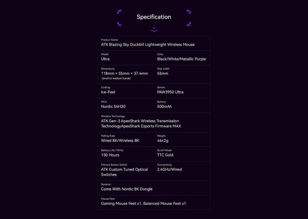 Chuột ATK Duckbill Purple (Dongle 8k phiên bản mới)