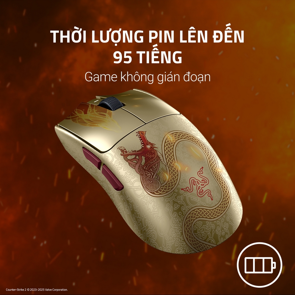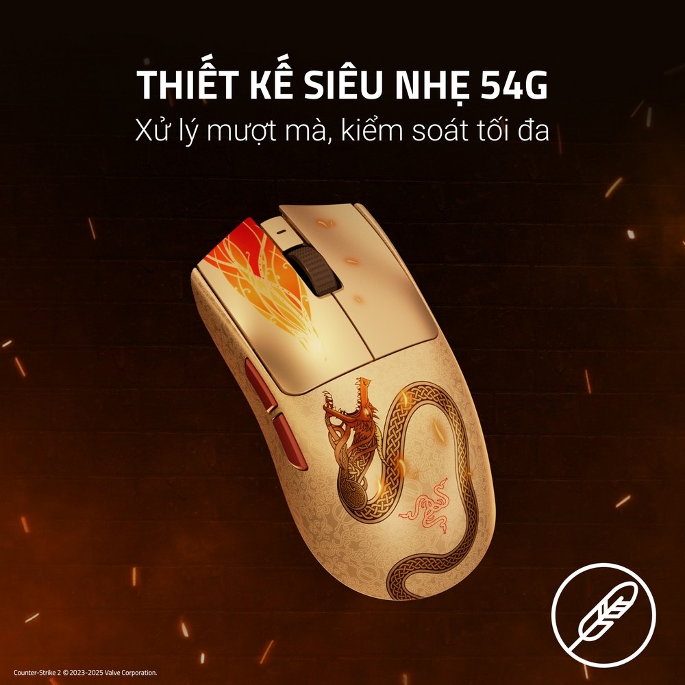 Kế tiếp sự thành công của phiên bản V2, Razer tiếp tục nghiên cứu, cải tiến và cho ra mắt Razer Viper V3 Pro CS2 Counter-Strike 2 Edition với định hướng trở thành mẫu chuột Gaming cao cấp cho Game thủ.Với phiên bản đặc biệt CS2 Edition mang ngoại hình của khẩu Dragon Lore huyền thoại, chuột Razer này là sự nâng cấp xứng tầm cho anh em game thủ nói chung và anh em game thủ FPS nói riêng.