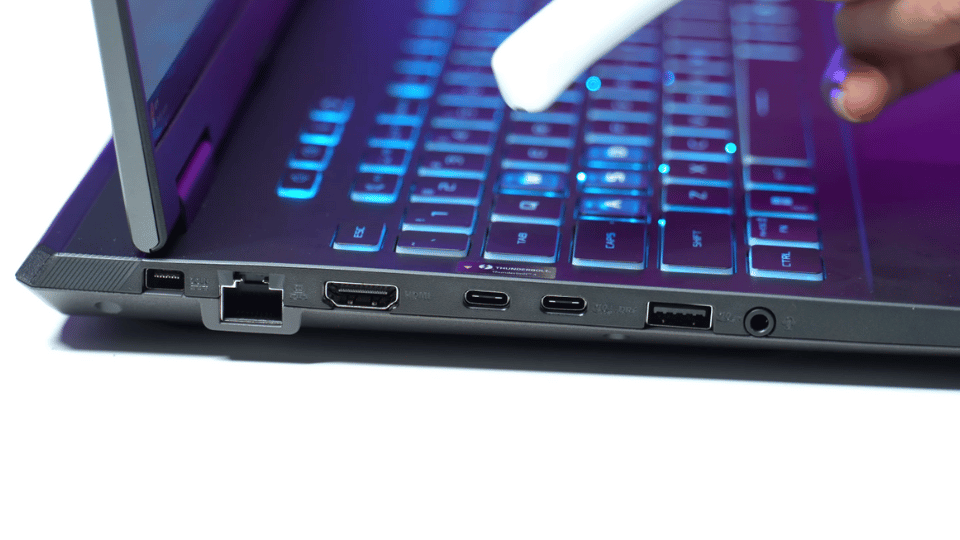 Cổng kết nối: Đầy đủ cho mọi nhu cầu với 1 cổng Thunderbolt 4 (Type-C), 1 cổng USB-C sạc PD, HDMI 2.1, cổng LAN và 2 cổng USB-A truyền thống.