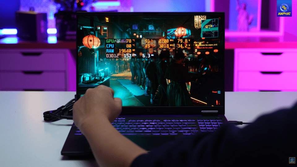 Cyberpunk 2077: Nhờ công nghệ Frame Gen 4x (độc quyền RTX 50 series), máy có thể đạt tới 165 FPS ở thiết lập đồ họa cao – một con số không tưởng với card đồ họa dòng 50 trước đây.