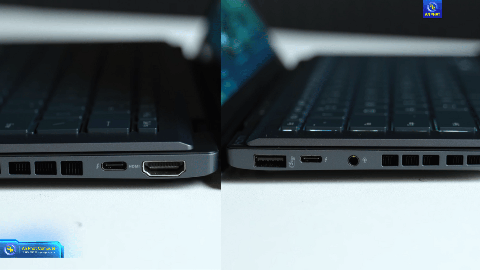 Cổng kết nối: Máy vẫn giữ lại đầy đủ các cổng cần thiết: 1x USB-A 3.2 Gen 1, 2x Thunderbolt 4 (hỗ trợ sạc/xuất hình), 1x HDMI 2.1 và Jack 3.5mm.