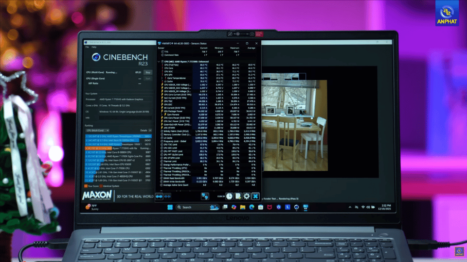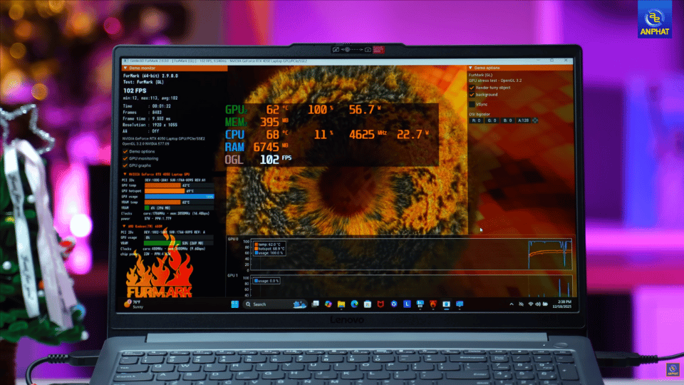 Nhiều người lo ngại thiết kế 1 quạt tản nhiệt sẽ làm máy nóng, nhưng thực tế combo Ryzen HS + RTX 4050 lại hoạt động cực kỳ ổn định: