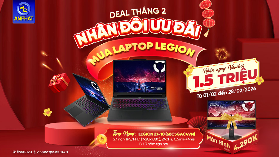 Chào đón tháng 2 đầy hứng khởi, An Phát Computer mang đến chương trình khuyến mãi đặc biệt mang tên “Deal tháng 2 - Nhân đôi ưu đãi”, diễn ra từ ngày 01/02 đến hết ngày 28/02/2026. Đây là cơ hội vàng để các game thủ chuyên nghiệp và những người yêu công nghệ sở hữu bộ combo chiến game đỉnh cao từ dòng Lenovo Legion danh tiếng.