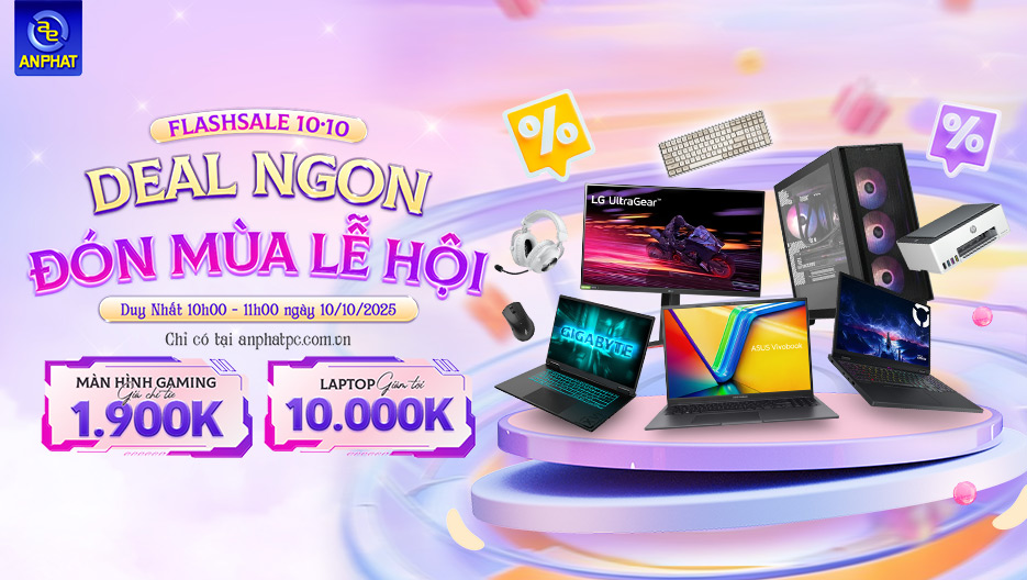 Anh em ơi, chuẩn bị tinh thần cháy hết mình cùng FLASH SALE 10/10 – DEAL NGON ĐÓN MÙA LỄ HỘI đây rồi! Chỉ duy nhất trong khung giờ vàng từ 10h đến 11h ngày 10/10/2025, An Phát Computer mang tới một bữa tiệc công nghệ với ưu đãi chưa từng có, giảm giá sập sàn tới 50%++ cho hàng loạt sản phẩm hot hit: từ laptop, màn hình, tai nghe cho đến phụ kiện xịn sò. Đây chính là cơ hội vàng để anh em “quét sạch giỏ hàng” với mức giá khiến ai cũng phải trầm trồ. Nhanh tay kẻo lỡ nhịp deal siêu đỉnh này nha!