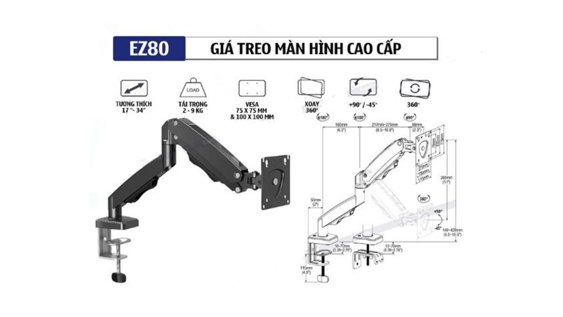 | Tính năng chính | Gắn và cố định màn hình lớn, giúp điều chỉnh góc nhìn linh hoạt, tiết kiệm không gian. |