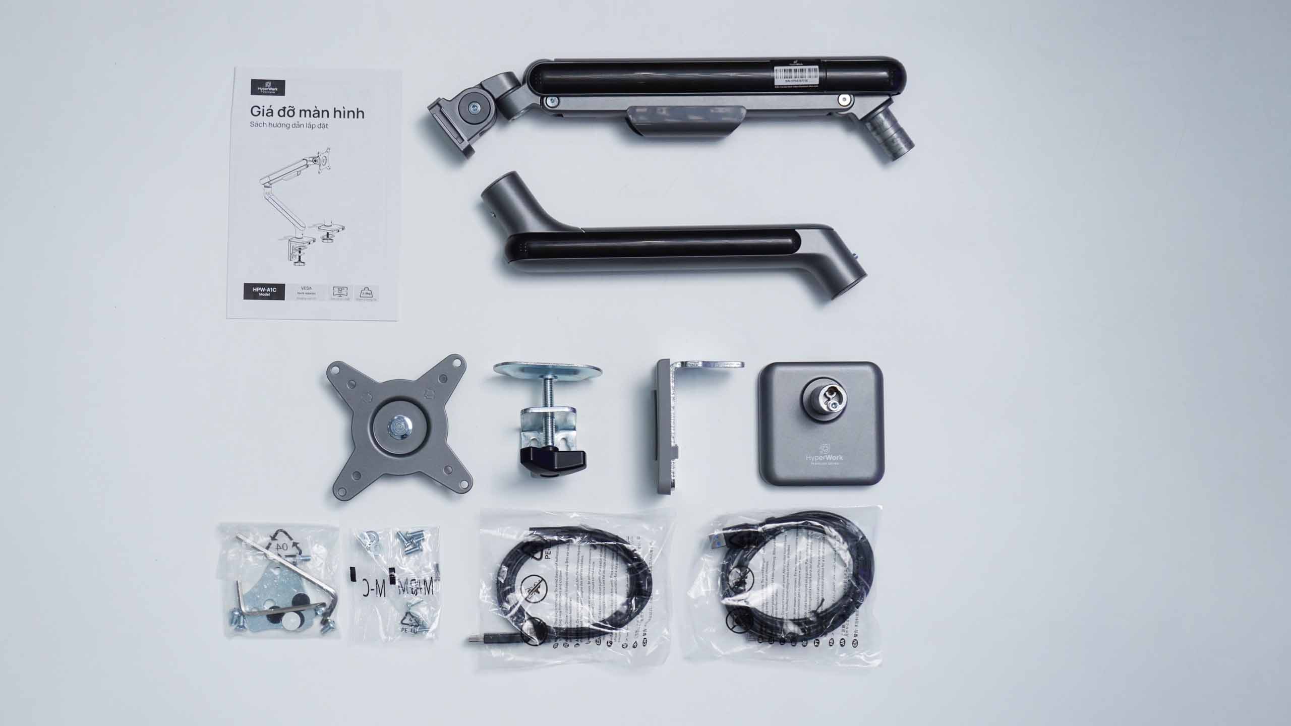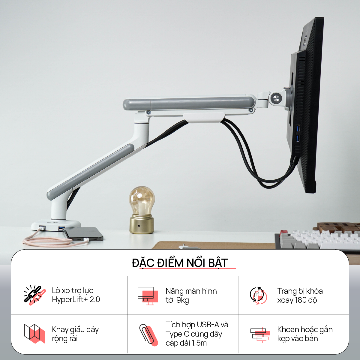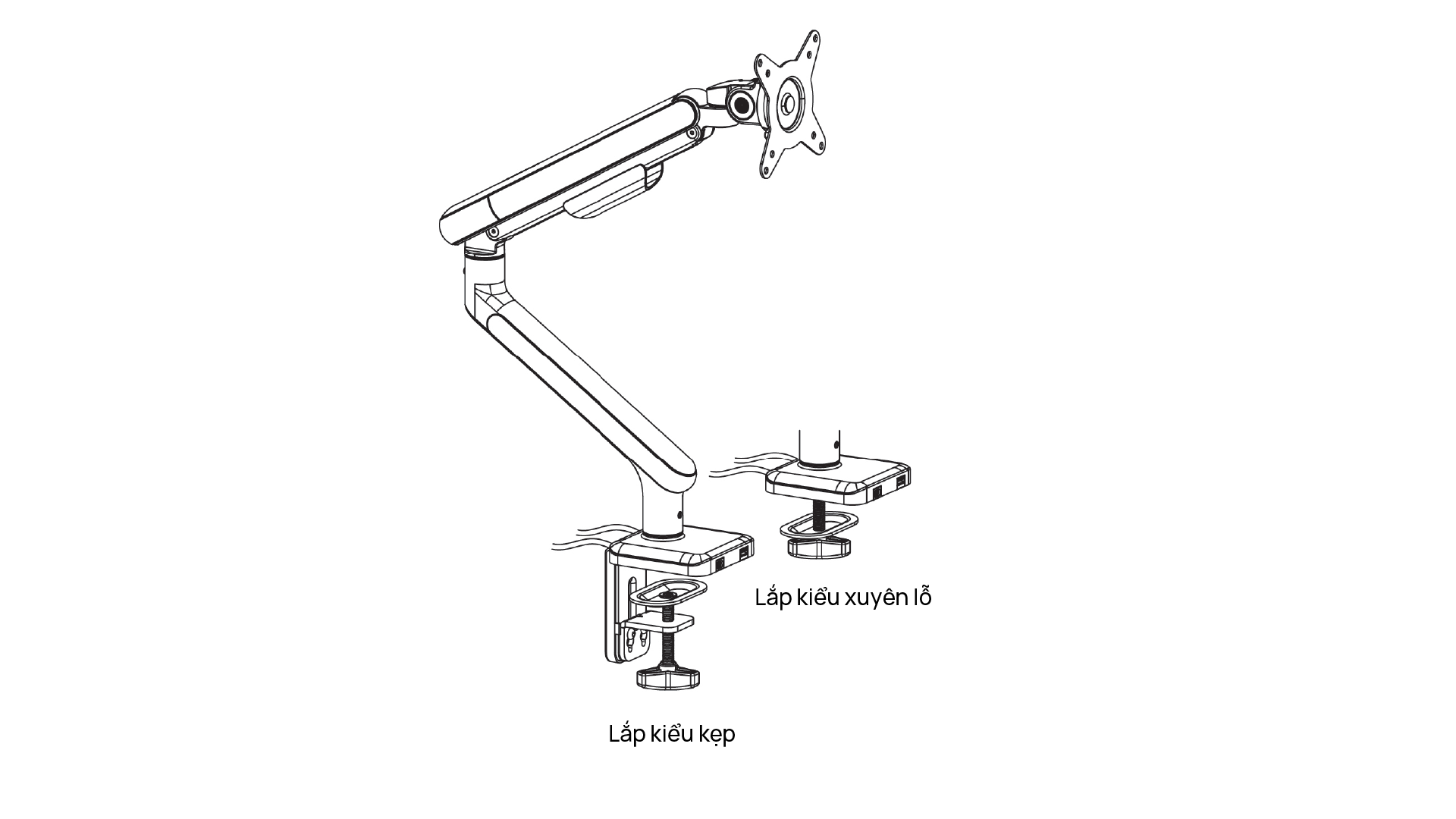 - Giá đỡ màn hình HyperWork hỗ trợ 2 hình thức là kẹp bàn và khoan lỗ trên mặt bàn. Rất linh hoạt để khách hàng lựa chọn.