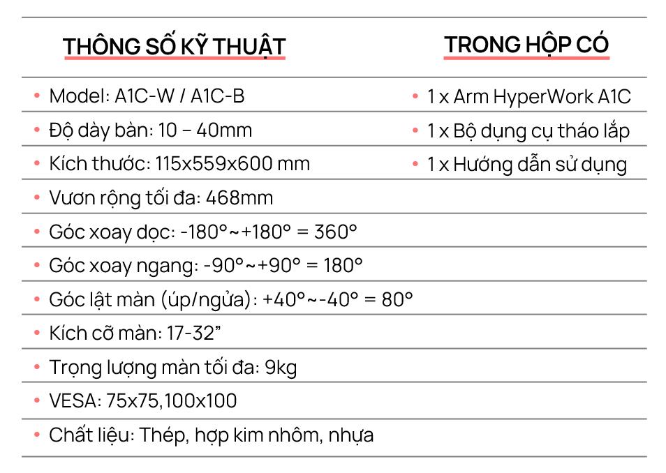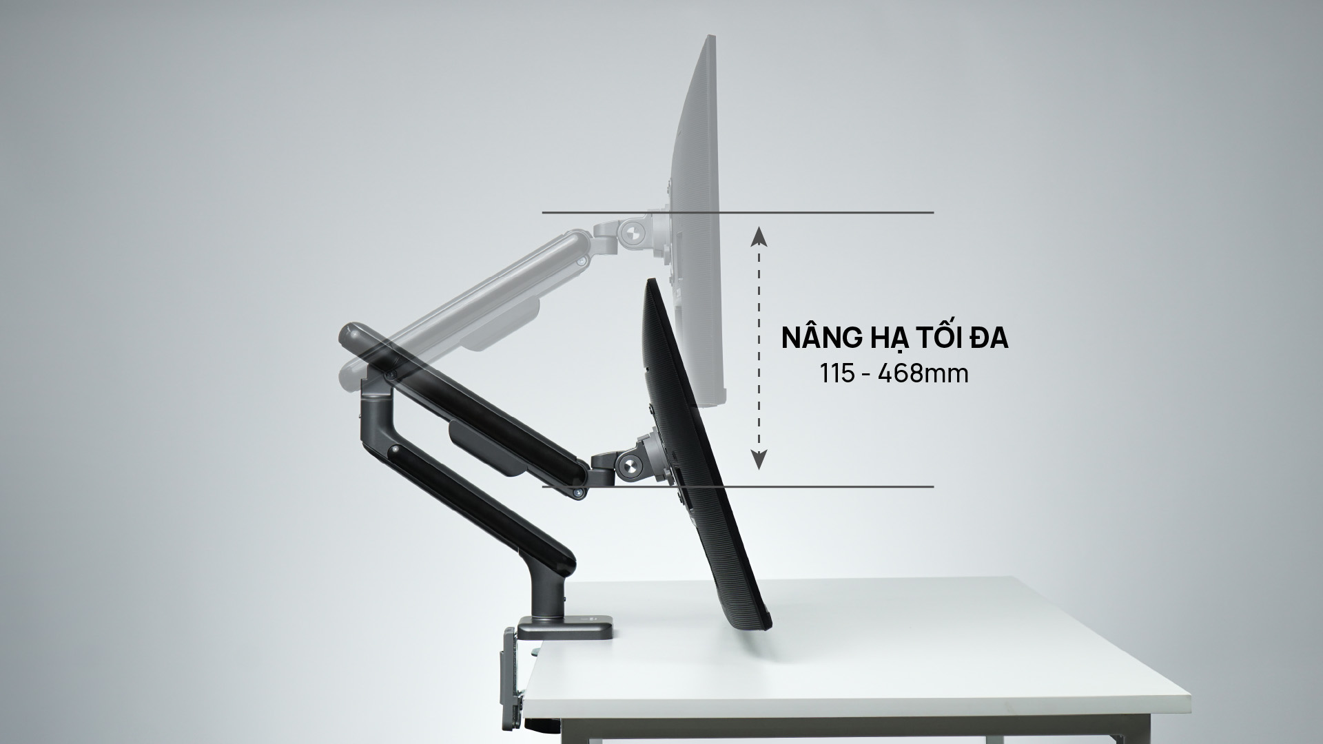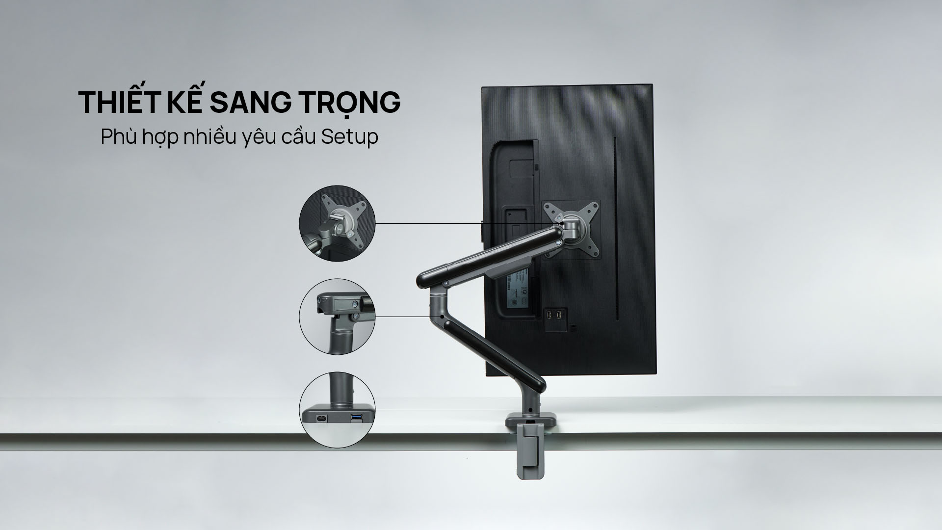 - Giá đỡ màn hình HyperWork hỗ trợ 2 hình thức là kẹp bàn và khoan lỗ trên mặt bàn. Rất linh hoạt để khách hàng lựa chọn.