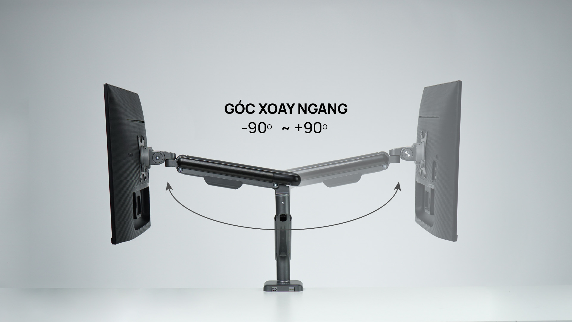 Giá đỡ 2 màn hình Humanmotion T6 Pro Dual 2025 HPW-T6P.Dual.2025-GRY Đen xám (17- 32 inch)