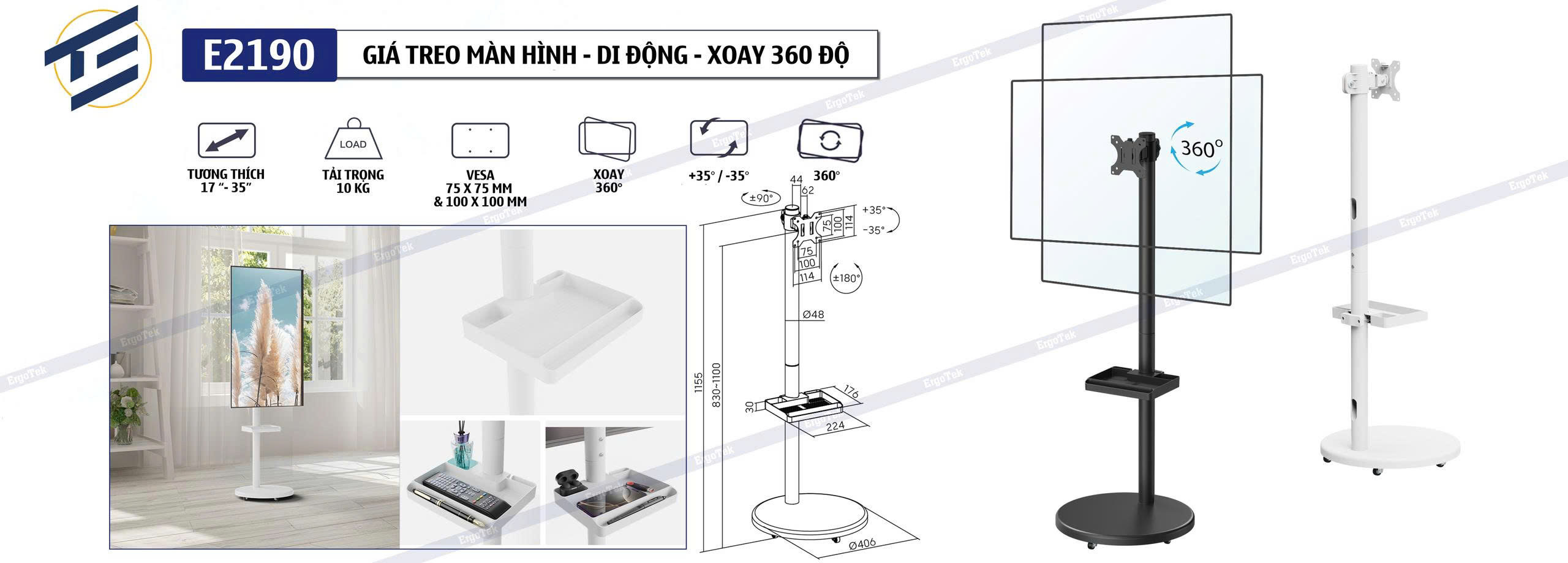 Giá Đỡ 2 Màn Hình Human Motion T6 Pro DUAL (17- 32 inch) Màu Trắng Bạc