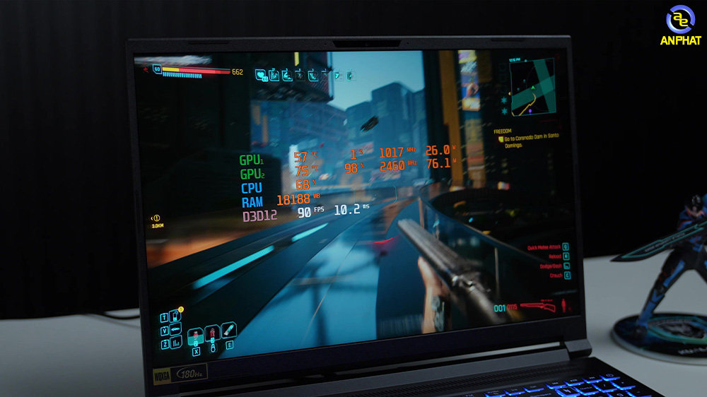 Khi cắm sạc và bật chế độ Performance hoặc Turbo Mode, toàn bộ sức mạnh của card rời RTX 5060 được phát huy. Các bài benchmark với Cinebench R23 và Furmark cho kết quả ấn tượng, đồng thời những tựa game nặng như Cyberpunk 2077 vẫn chạy mượt mà ở mức thiết lập cao.