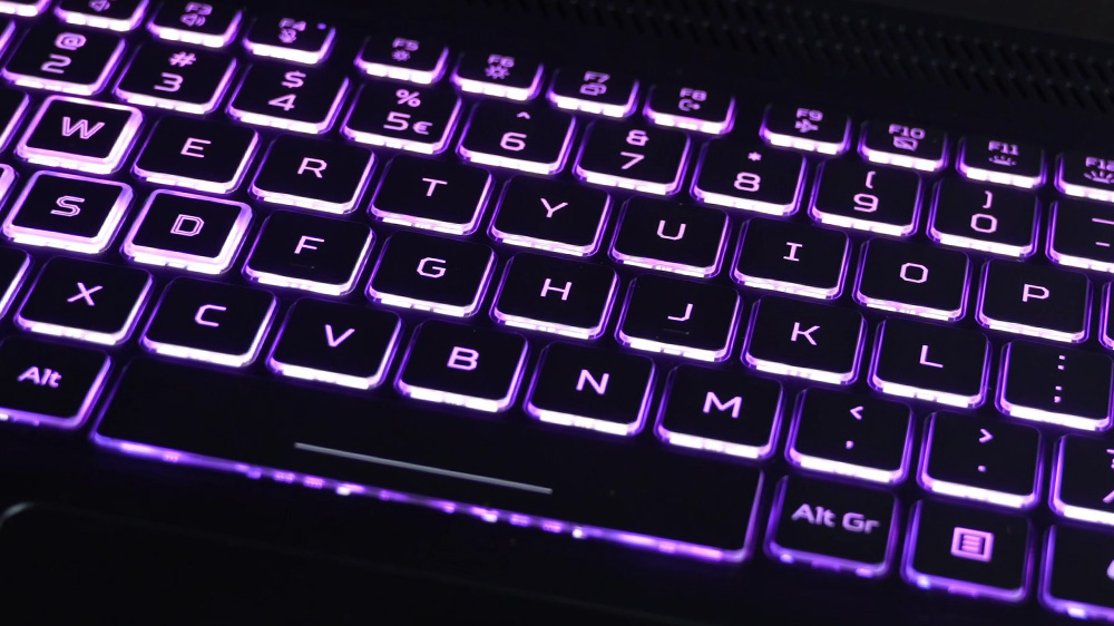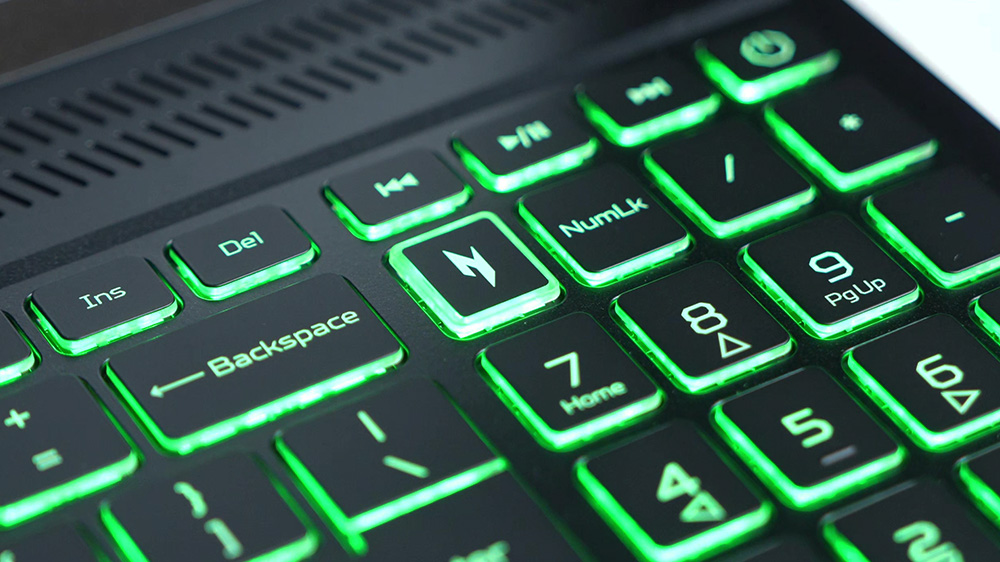 Bàn phím của Nitro V 16 là dạng Fullsize với cụm phím số phụ, mang đến trải nghiệm thuận tiện cho cả game thủ lẫn dân văn phòng. Hành trình phím vừa phải, độ nảy ổn định, cảm giác bấm chắc chắn.