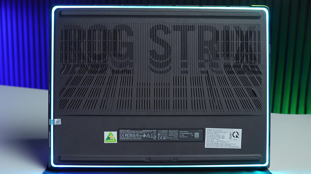 Logo ROG phát sáng RGB tạo điểm nhấn ngay khi mở nắp máy, thể hiện rõ DNA mạnh mẽ của dòng Strix.