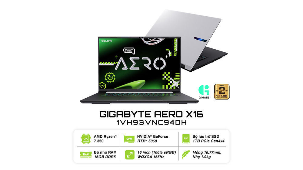 Laptop GIGABYTE AERO X16 X161VH93VNC64AH (AMD Ryzen Al 7 350 | RTX 5060 8GB | 16 inch IPS WQXGA 165Hz | 32GB | 1TB | Win 11 | Xám)