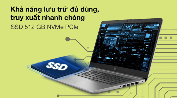 Ổ cứng 512GB PCIe® NVMe™ SSD được kết hợp trên chiếc laptop này cho việc khởi động máy hoặc khởi động các ứng dụng nhanh hơn, nhờ đó công việc của bạn được đáp ứng kịp thời, không trễ kế hoạch. Bộ nhớ 512GB cũng cho bạn thỏa sức lưu trữ dữ liệu học tập công việc dễ dàng và hiệu quả. Cùng với đó, Laptop HP 240 G8 519A5PA còn sử dụng viên pin 3 cell 41Wh, cho thời lượng hoạt động khá lâu để bạn học tập và làm việc.