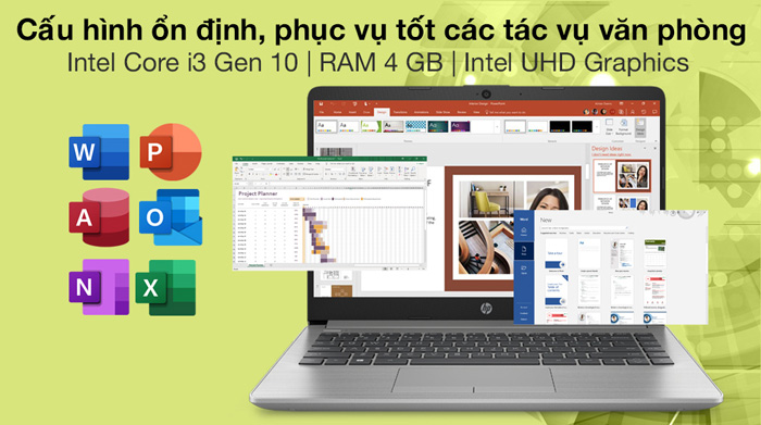 Bên cạnh đó, bộ nhớ RAM 4GB (1 x 4GB) DDR4-2666 MHz (2 khe) có khả năng đa nhiệm ổn định giúp máy sử dụng mượt mà và có thể mở cùng lúc nhiều tác vụ văn phòng cơ bản như Word, Excel, PowerPoint,...