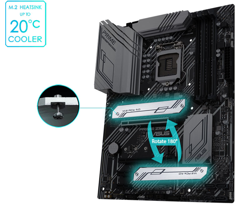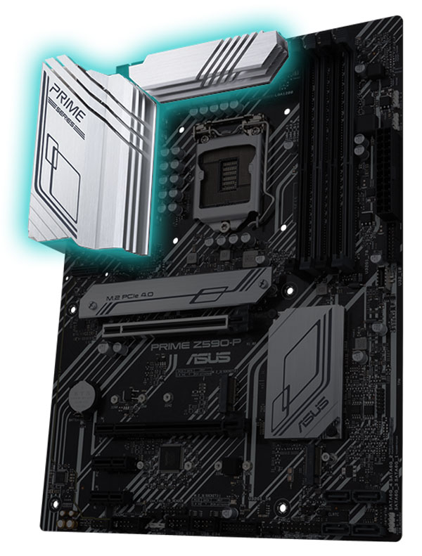 Dòng sản phẩm mainboard ASUS PRIME Z590-P/CSM được thiết kế với nhiều bộ tản nhiệt trên bo mạch chủ và một loạt đầu cắm quạt kết hợp giúp thiết bị luôn mát và ổn định khi chạy khối lượng công việc lớn.