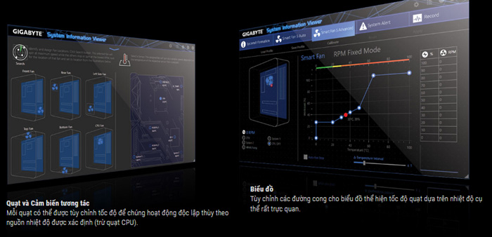 GIGABYTE System Information Viewer là tiện ích cho phép người dùng xem trạng thái hiện tại của hệ thống. Nó giúp giám sát các thành phần như xung nhịp, vi xử lý, cài đặt sẵn các profile tốc độ quay của quạt, tạo cảnh báo khi nhiệt độ quá cao hoặc ghi nhận lại hành vi của hệ thống và các tính năng độc đáo khác.