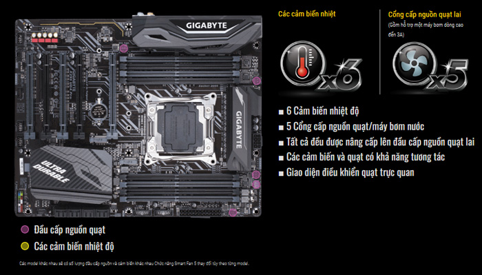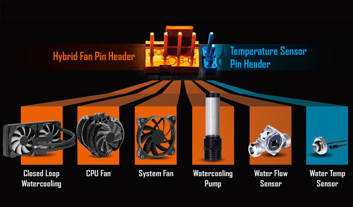 Với sự hỗ trợ của Smart Fan 5, người dùng có thể an tâm tận hưởng hiệu năng mạnh mẽ của máy tính trong khi vẫn duy trì được nhiệt độ ổn định. Smart Fan 5 cho phép thay đổi các đầu cấp nguồn quạt để phản ánh các cảm biến nhiệt khác nhau ở từng cụm trên bo mạch chủ. Không những thế, chế độ Smart Fan 5 còn là những đầu cấp nguồn lại vừa hỗ trợ các quạt dạng PWM mode và Voltage mode của bộ tản nhiệt nước.