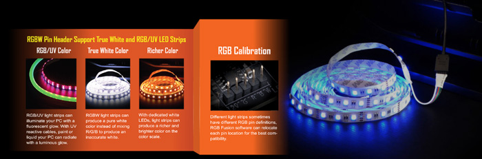 Bạn cũng không cần phải lo lắng khi chọn dây đèn, vì bo mạch chủ AORUS hỗ trợ nhiều loại RGBW / -UV có trên thị trường, nhờ phần mềm RGB Fusion cho phép người dùng xác định lại vị trí chân cắm cho tín hiệu R/G/B.