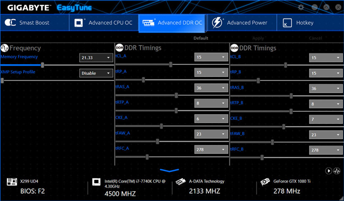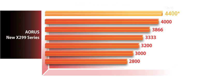 GIGABYTE cung cấp một nền tảng được thử nghiệm và chứng minh tính tương thích với các profile lên đến 4400MHz và cao hơn. Những gì người dùng cần làm để đạt được hiệu suất này là đảm bảo bộ nhớ có sẵn XMP và chức năng XMP được kích hoạt trên bo mạch chủ GIGABYTE.