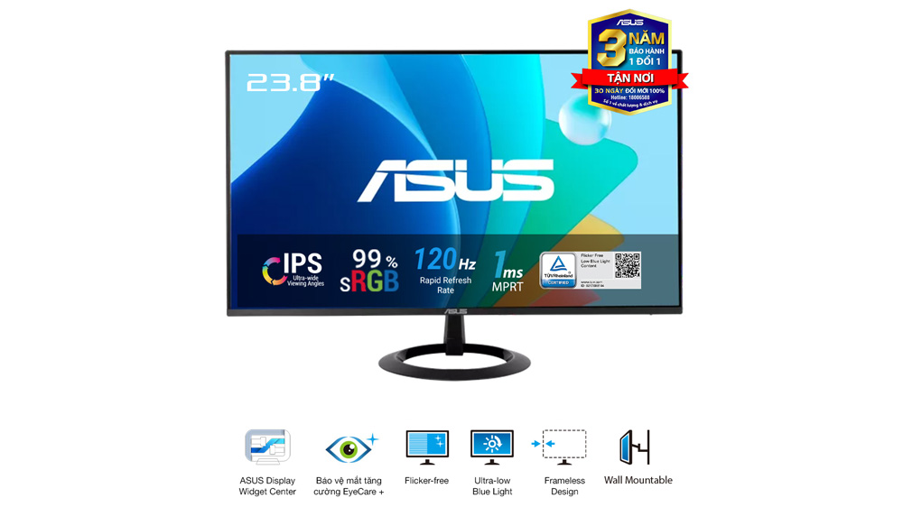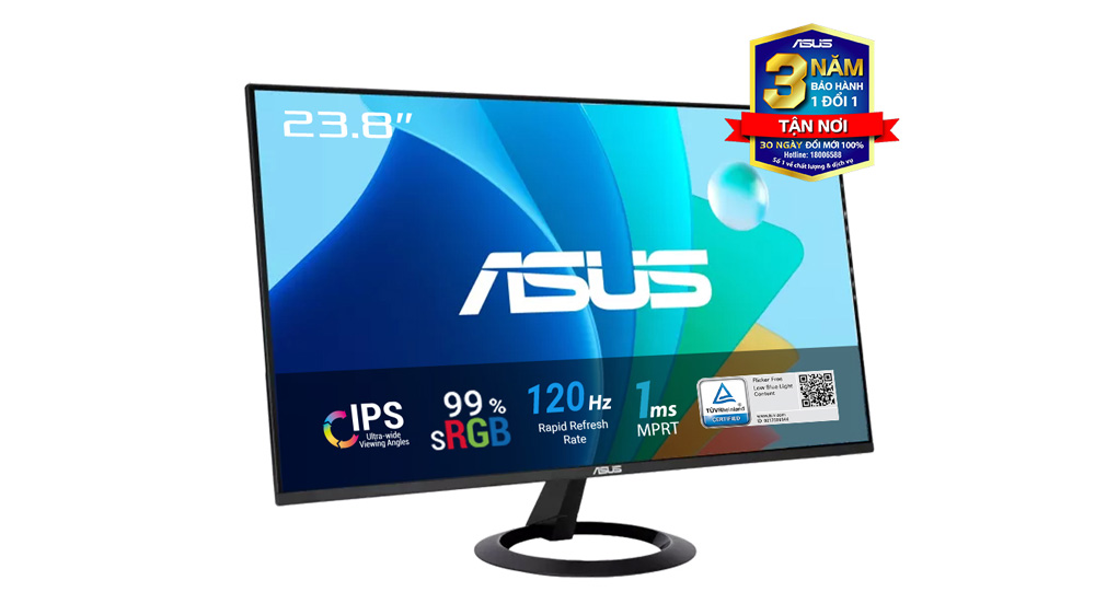 Một điểm đáng chú ý của ASUS VZ249HG là tần số quét 120Hz, mang đến trải nghiệm hình ảnh mượt mà hơn hẳn so với các màn hình 60Hz thông thường. Kết hợp với thời gian phản hồi 1ms (MPRT), mọi chuyển động trong game hay video đều rõ ràng, không bị nhòe hay giật hình – giúp người dùng tận hưởng cảm giác thị giác ổn định và liền mạch.
