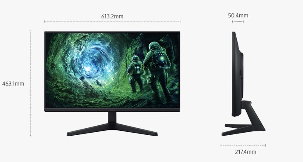 Chân đế chắc chắn giúp màn hình đứng vững trên bàn làm việc, đồng thời tối ưu diện tích sử dụng. Với kích thước 613.2 x 463.1 x 217.4 mm (bao gồm chân đế) và trọng lượng chỉ 3.9 kg, người dùng có thể dễ dàng bố trí hoặc di chuyển khi cần. Nếu muốn treo tường hoặc sử dụng arm màn hình, thiết kế gọn nhẹ của Odyssey G5 cũng là một điểm cộng lớn.
