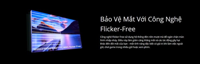 AOC 27G2X được trang bị công nghệ Flicker Free để ngăn chặn hiện tượng nhấp nháy trên màn hình, giúp làm giảm hiện tượng căng thẳng, mỏi mắt và các tác động gây hại khác.