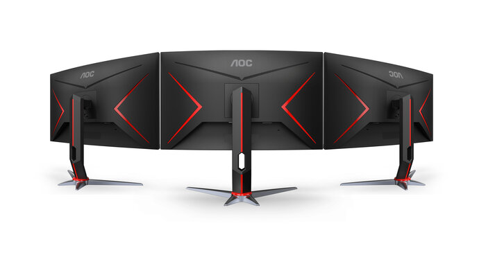 Để mang tới một sản phẩm đúng chất Gaming, các kỹ sư thiết kế của AOC đã thêm những đường viền đỏ trên mặt sau cùng dọc theo chân đế. Trên chân đế còn trang bị một ổ trống nhỏ để quá trình đi dây thêm dễ dàng và gọn gàng.