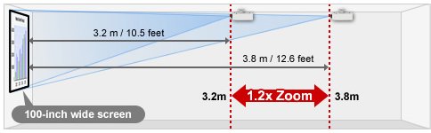 Trang bị bộ ống kính có zoom lớn lên đến 1.2X, có nghĩa khoảng cách lắp đặt dễ dàng và linh hoạt hơn.