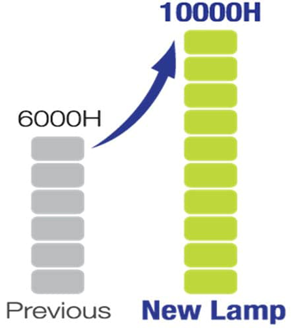 Sử dụng công nghệ đột phá để kéo dài tuổi thọ bóng đèn lên đến 10,000 giờ. Nhờ ứng dụng công nghệ làm mát mới và cải thiện tuổi thọ các thiết bị phụ trợ giúp tăng tuổi thọ bóng đèn và các phụ kiện khác.