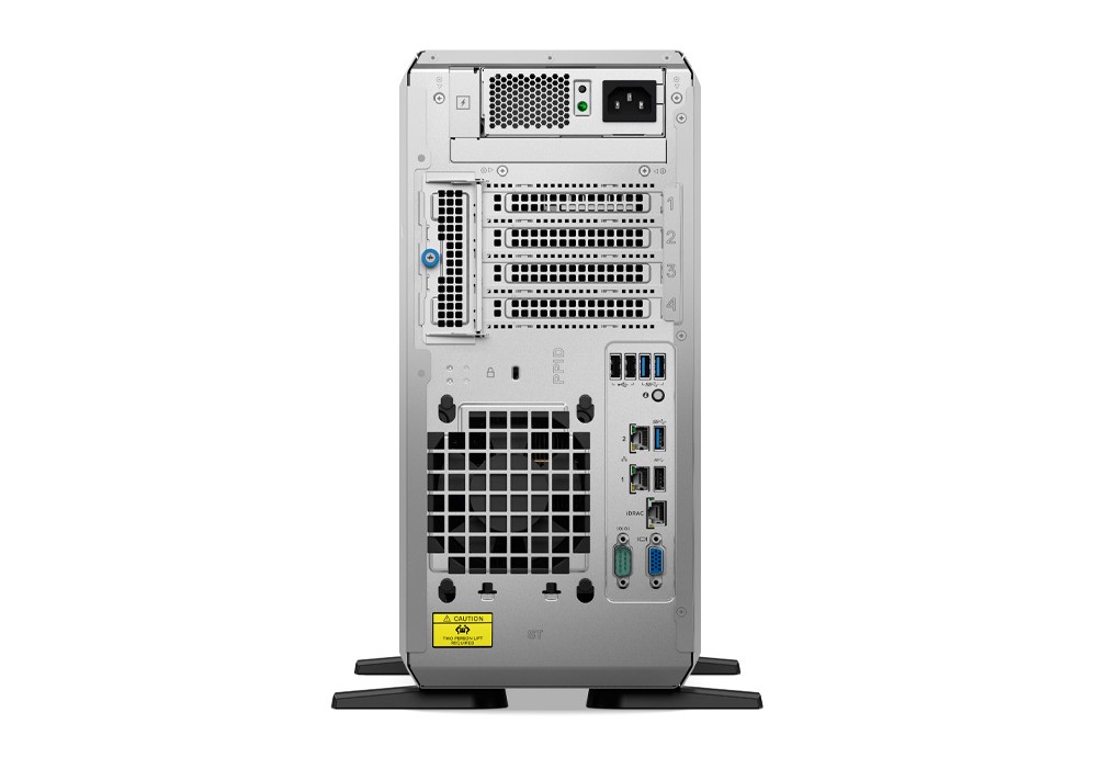 Dell PowerEdge T360 hỗ trợ tối đa 4 khe cắm PCIe, bao gồm cả PCIe Gen5 và Gen4, cho phép mở rộng card mạng, card RAID hoặc các thiết bị chuyên dụng khác trong tương lai. Hệ thống cổng kết nối phong phú với các cổng USB 3.2 Gen1, USB 2.0, VGA, Serial và 2 cổng Ethernet, giúp kết nối linh hoạt với các thiết bị ngoại vi và hạ tầng mạng hiện có. Cổng Dedicated iDRAC Ethernet và iDRAC Direct hỗ trợ quản trị thuận tiện ngay cả khi hệ thống gặp sự cố.