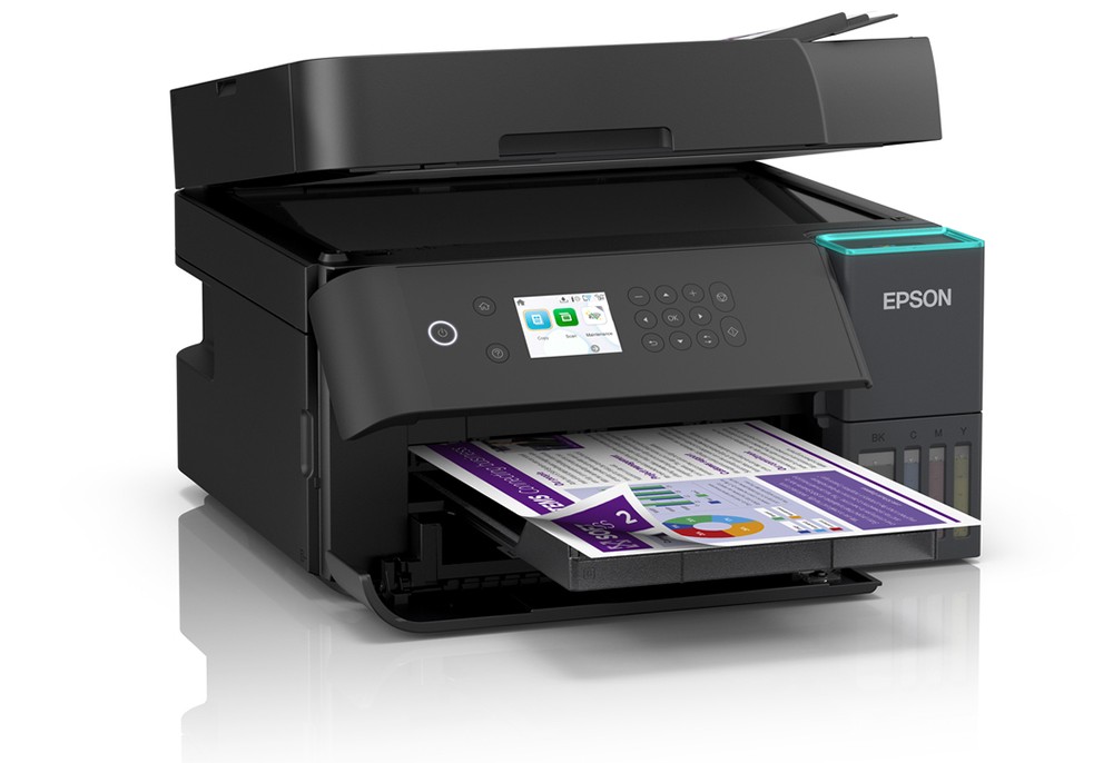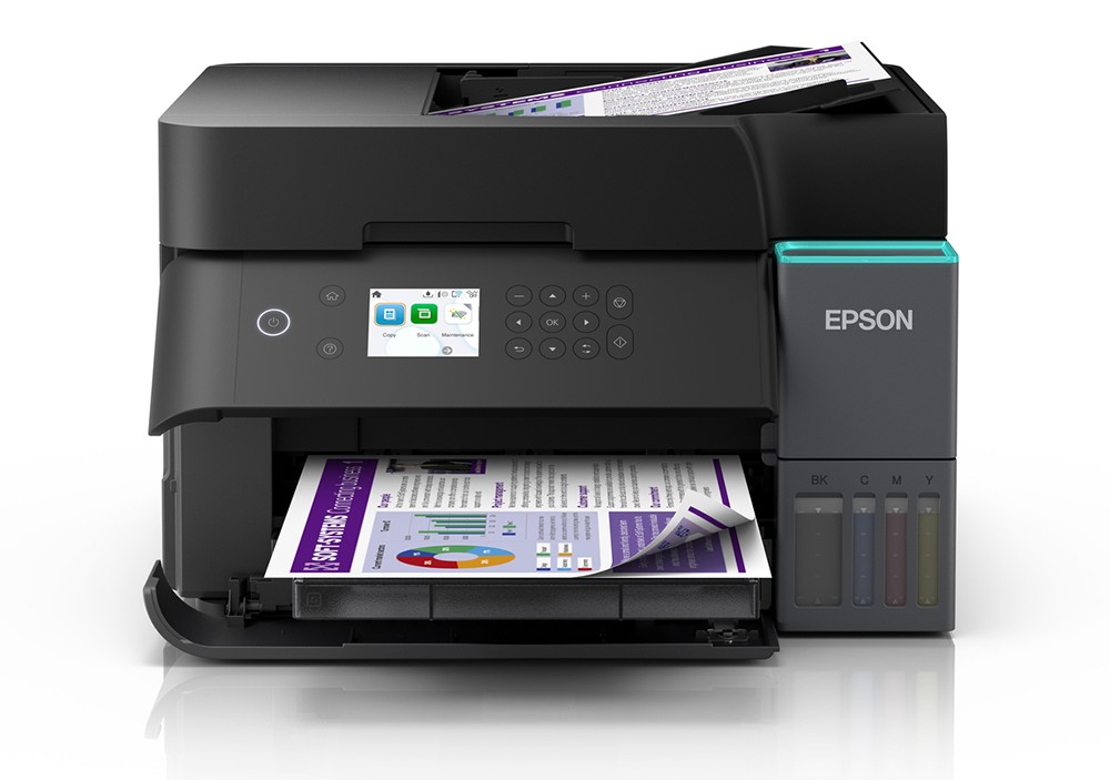 Hệ thống mực EcoTank dung lượng lớn là điểm nổi bật của sản phẩm, giúp giảm đáng kể chi phí in ấn. Mực đen có thể in lên đến 8.500 trang, trong khi mỗi màu in được khoảng 6.500 trang, phù hợp cho nhu cầu in ấn liên tục với chi phí thấp.