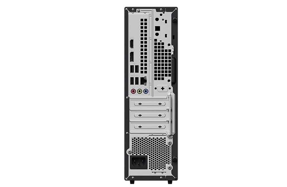 Mặt sau hỗ trợ HDMI 1.4 và DisplayPort 1.4, cho phép xuất hình ảnh ra 2 màn hình cùng lúc, rất phù hợp cho kế toán, quản lý hay người dùng cần không gian làm việc mở rộng. Ngoài ra còn có LAN Gigabit RJ45, hệ thống âm thanh 7.1, nhiều cổng USB 2.0 và khóa Kensington tăng cường bảo mật vật lý cho thiết bị.