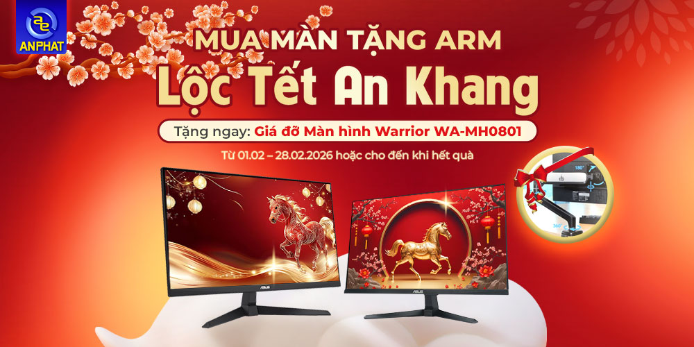 Chào mừng năm mới, An Phát Computer bật mí bí kíp nâng cấp góc làm việc và chiến game "ngầu" hơn bao giờ hết – MUA MÀN TẶNG ARM - LỘC TẾT AN KHANG! Từ 01/02/2026 đến 28/02/2026 (hoặc đến khi hết quà), khi mua màn hình ASUS VG279QE5A hoặc VG249QE5A, bạn sẽ được tặng ngay giá treo màn hình Warrior cực chất – món quà "xịn sò" giúp tiết kiệm không gian, điều chỉnh góc nhìn linh hoạt và nâng tầm trải nghiệm! Áp dụng cho cả mua online lẫn offline trên toàn hệ thống showroom An Phát Computer. Chần chừ là hết quà đó nha!