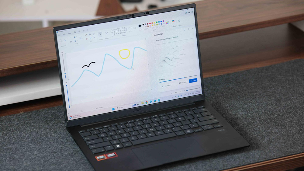 Bên trong, nền tảng AMD Ryzen AI 400 Series với NPU 50 TOPS giúp Zenbook 14 không chỉ đủ mạnh cho các tác vụ hàng ngày, mà còn hỗ trợ các tính năng laptop AI tích hợp trong hệ điều hành.