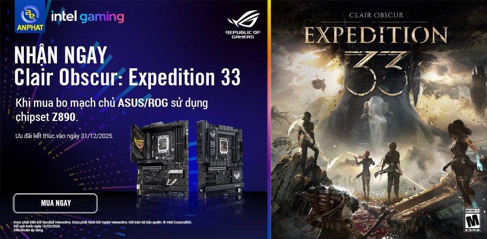 Chinh phục thế giới game đỉnh cao cùng An Phát Computer! Từ nay đến hết ngày 31/12/2025, khi sở hữu bo mạch chủ ASUS/ASUS ROG Z890 Series, bạn sẽ nhận ngay code game CLAIR OBSCUR: EXPEDITION 33 trị giá 770.000đ – siêu phẩm nhập vai được mong chờ nhất năm! Số lượng code cực giới hạn, nhanh tay nâng cấp hệ thống và trải nghiệm bom tấn đồ họa này ngay hôm nay. Mua online hay ghé trực tiếp showroom đều được áp dụng – cơ hội chỉ dành cho những game thủ nhanh tay nhất!