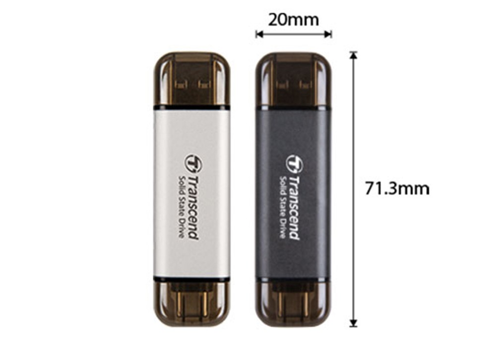 SSD Transcend TS1TESD310C sở hữu kích thước cực kỳ nhỏ gọn chỉ 71,3 × 20 × 7,8 mm và trọng lượng 11g, dễ dàng bỏ túi hoặc gắn cùng móc chìa khóa. Thiết kế tối giản nhưng chắc chắn giúp bảo vệ dữ liệu an toàn trong quá trình di chuyển.