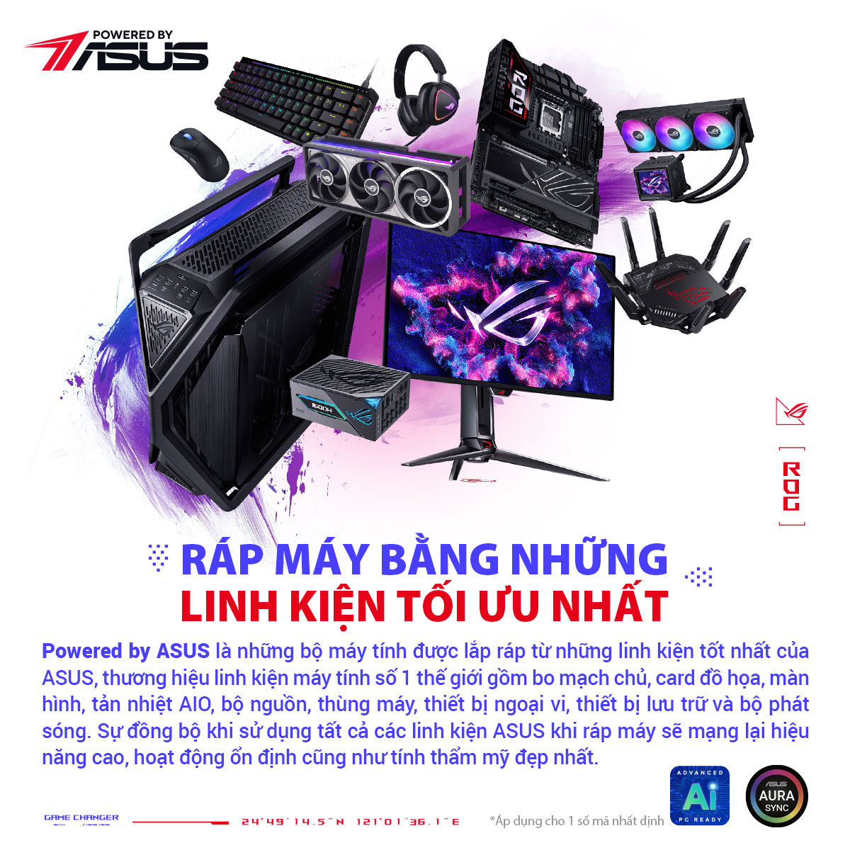 Điểm nhấn của hệ thống chính là ROG Astral RTX 5090 - một trong những cạc đồ họa mạnh mẽ nhất trên thị trường hiện nay. Với 32GB VRAM GDDR7 và khả năng ép xung, RTX 5090 mang đến hiệu suất đồ họa vượt trội, sẵn sàng xử lý mọi tựa game ở độ phân giải 4K/8K với tốc độ khung hình cao. Công nghệ Ray Tracing thế hệ mới cùng DLSS 4.0 mang lại trải nghiệm hình ảnh chân thực và sắc nét chưa từng có.