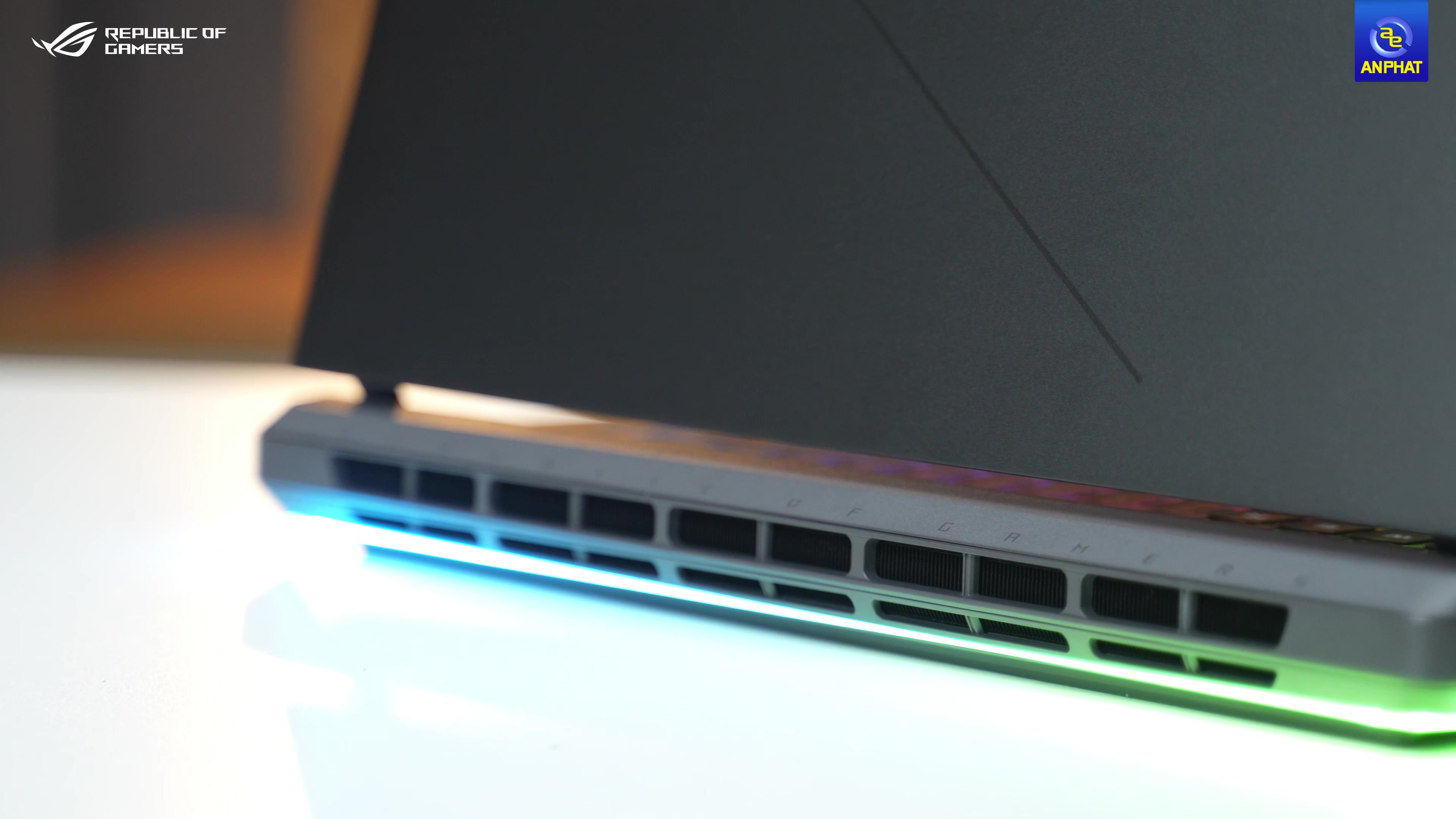 Khoác lên mình lớp áo giáp Eclipse Gray mạnh mẽ, ROG Strix G615J thể hiện đúng tinh thần "Republic of Gamers" của ASUS. Thiết kế lấy cảm hứng từ Esport với những đường cắt xẻ táo bạo, khe tản nhiệt hầm hố và dải LED chạy xung quanh thân máy (không được liệt kê chi tiết nhưng thường là đặc trưng của ROG Strix).