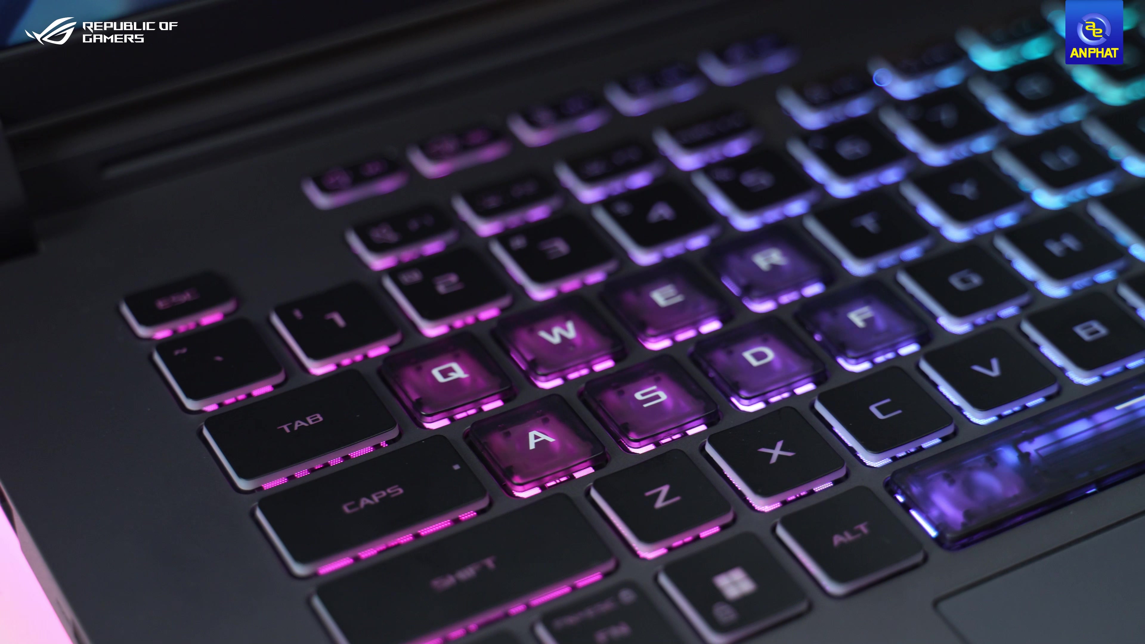 Bàn phím: Backlit Chiclet Keyboard 4-Zone RGB mang lại trải nghiệm gõ tốt với độ nảy cao, hành trình phím tối ưu cho gaming, cùng đèn nền RGB 4 vùng cá tính, dễ dàng tùy chỉnh qua phần mềm ROG.