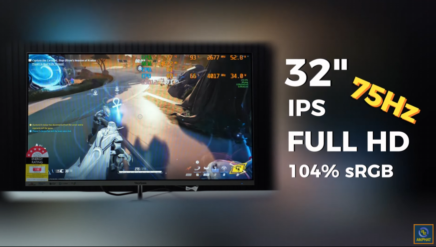 Kích thước lớn 32 inch và tấm nền IPS với góc nhìn rộng.