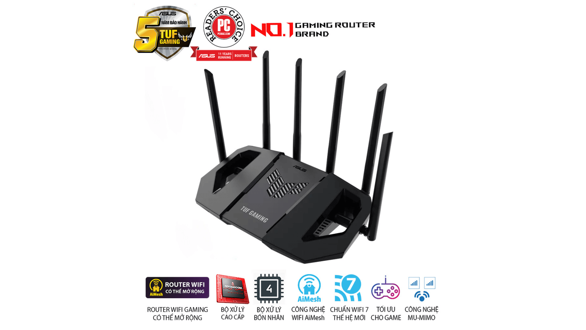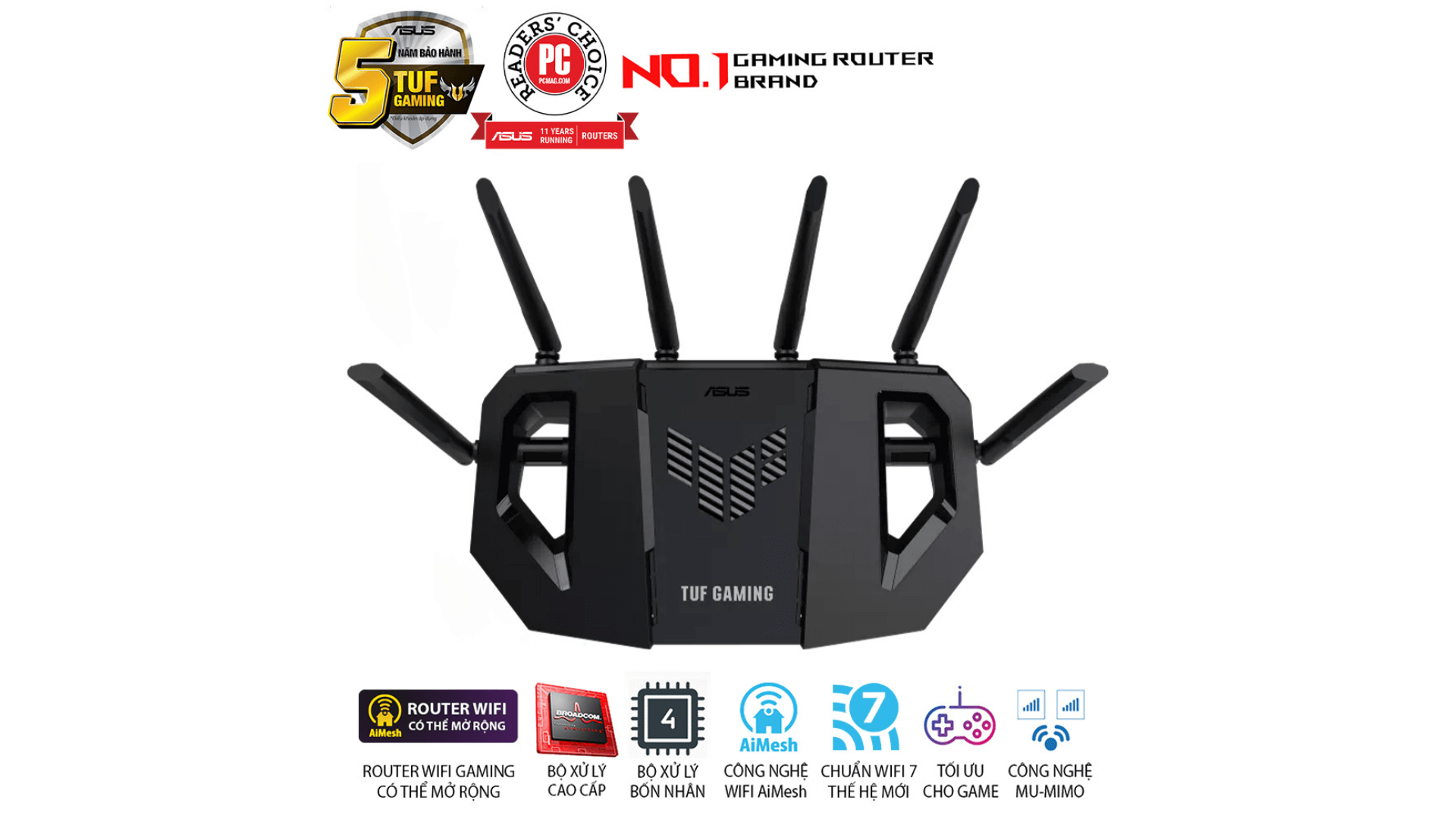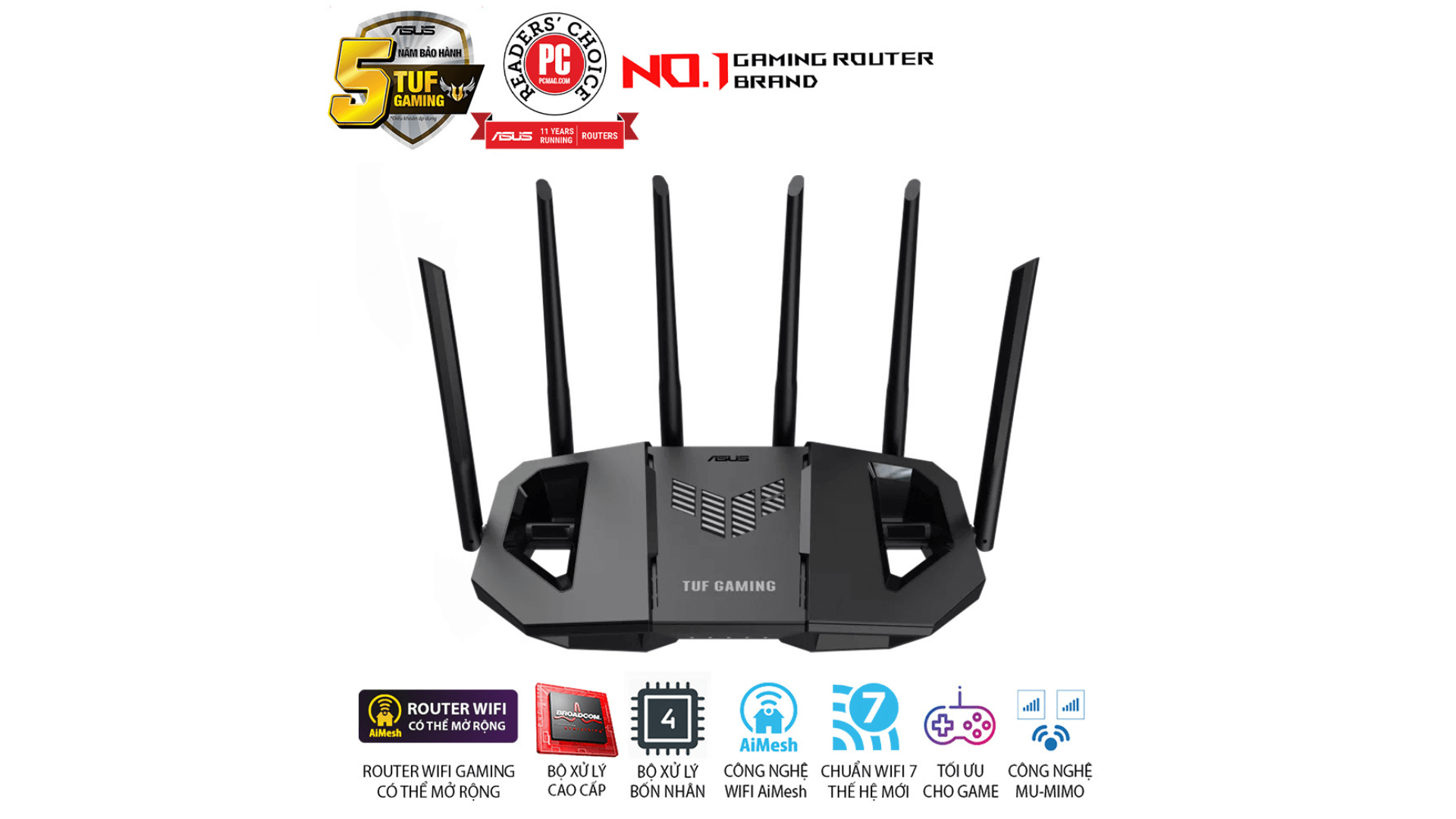 Với chuẩn Wi-Fi 7 mới nhất, hệ thống cổng 2.5GbE tốc độ cao, thiết kế đậm chất gaming và khả năng quản lý thông minh, Router Wi-Fi 7 ASUS TUF Gaming BE6500 là lựa chọn lý tưởng cho người dùng đang tìm kiếm một giải pháp mạng mạnh mẽ, ổn định và sẵn sàng cho tương lai.